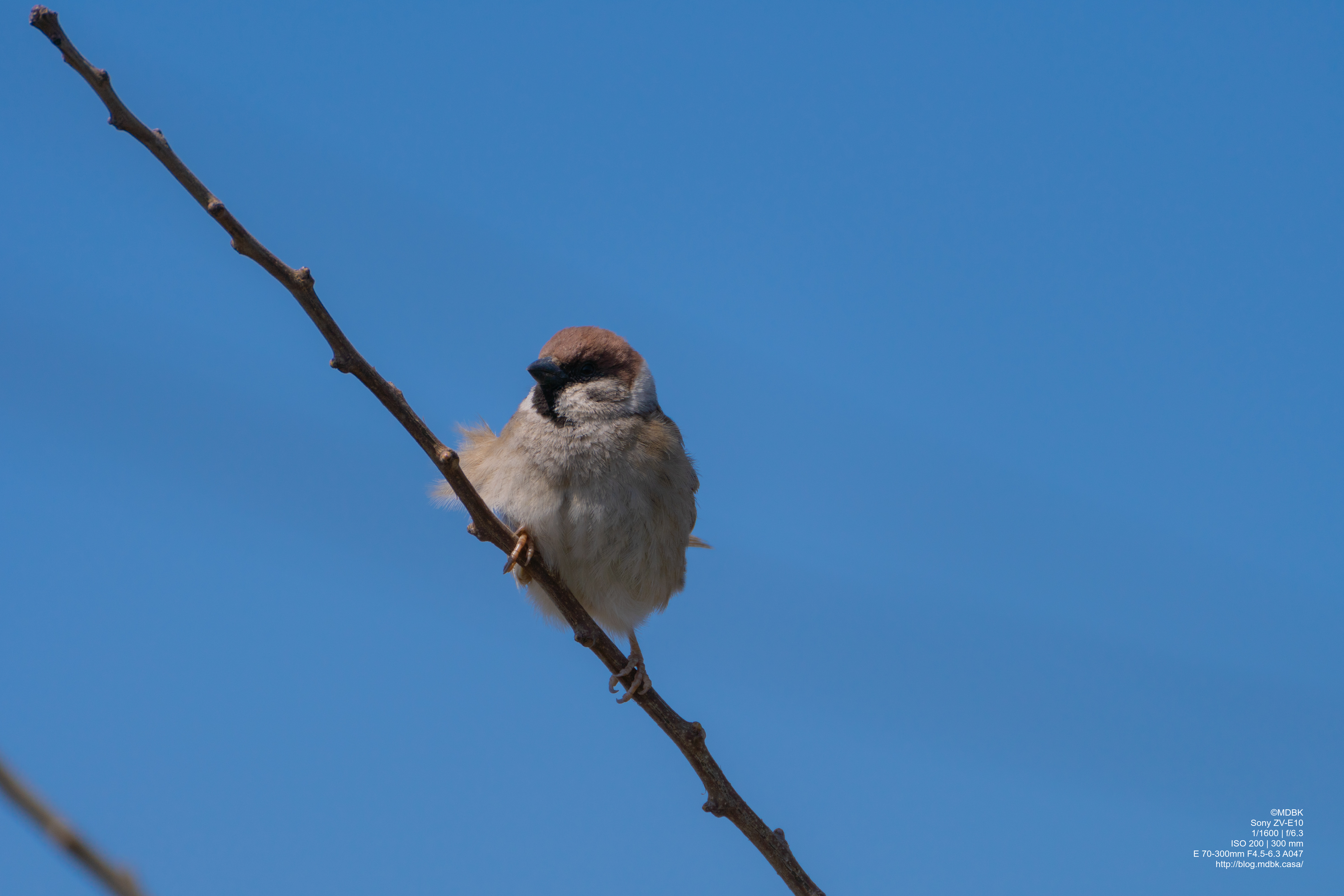 잘생겨 보이는 참새 바람에 살짝 날린 깃털