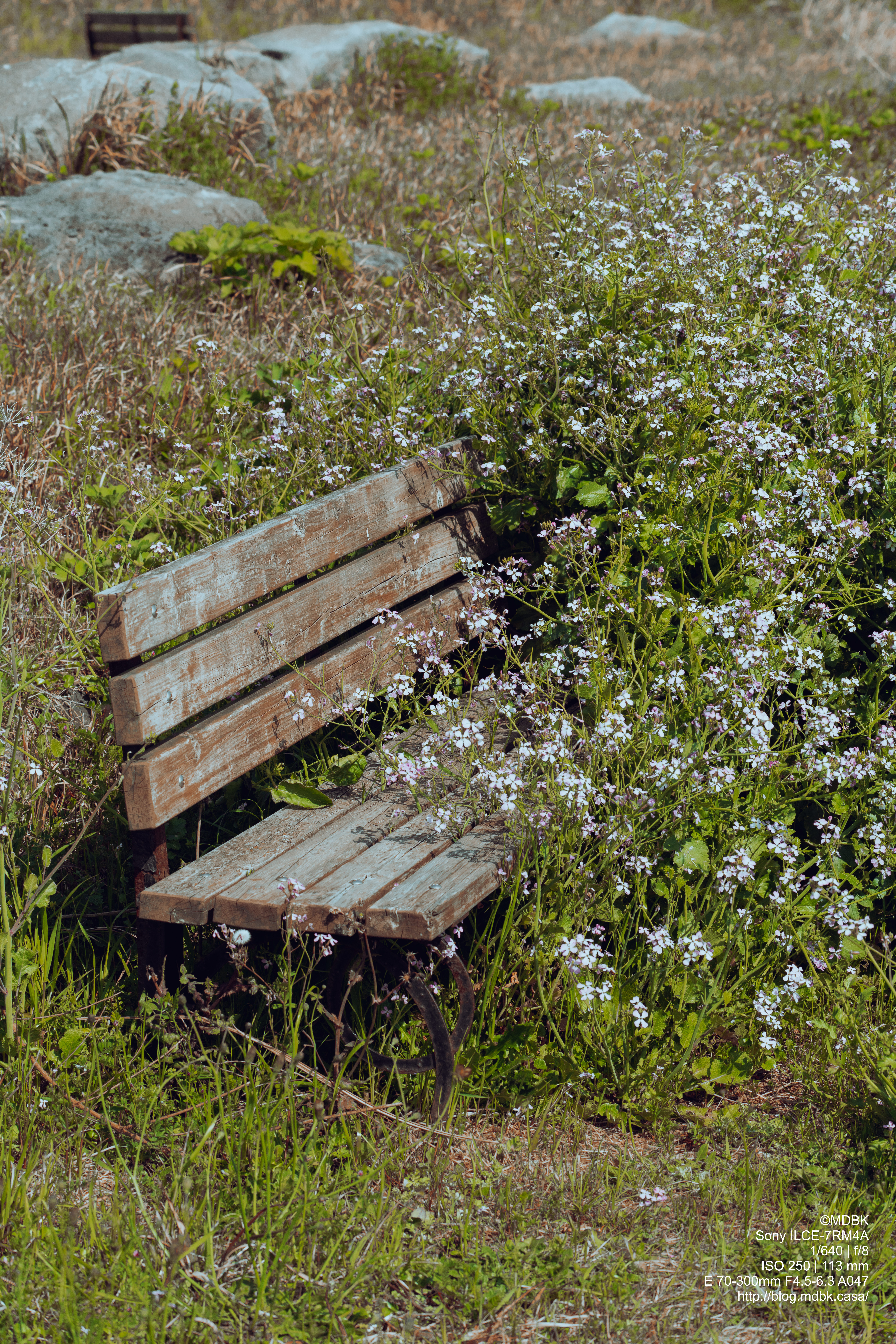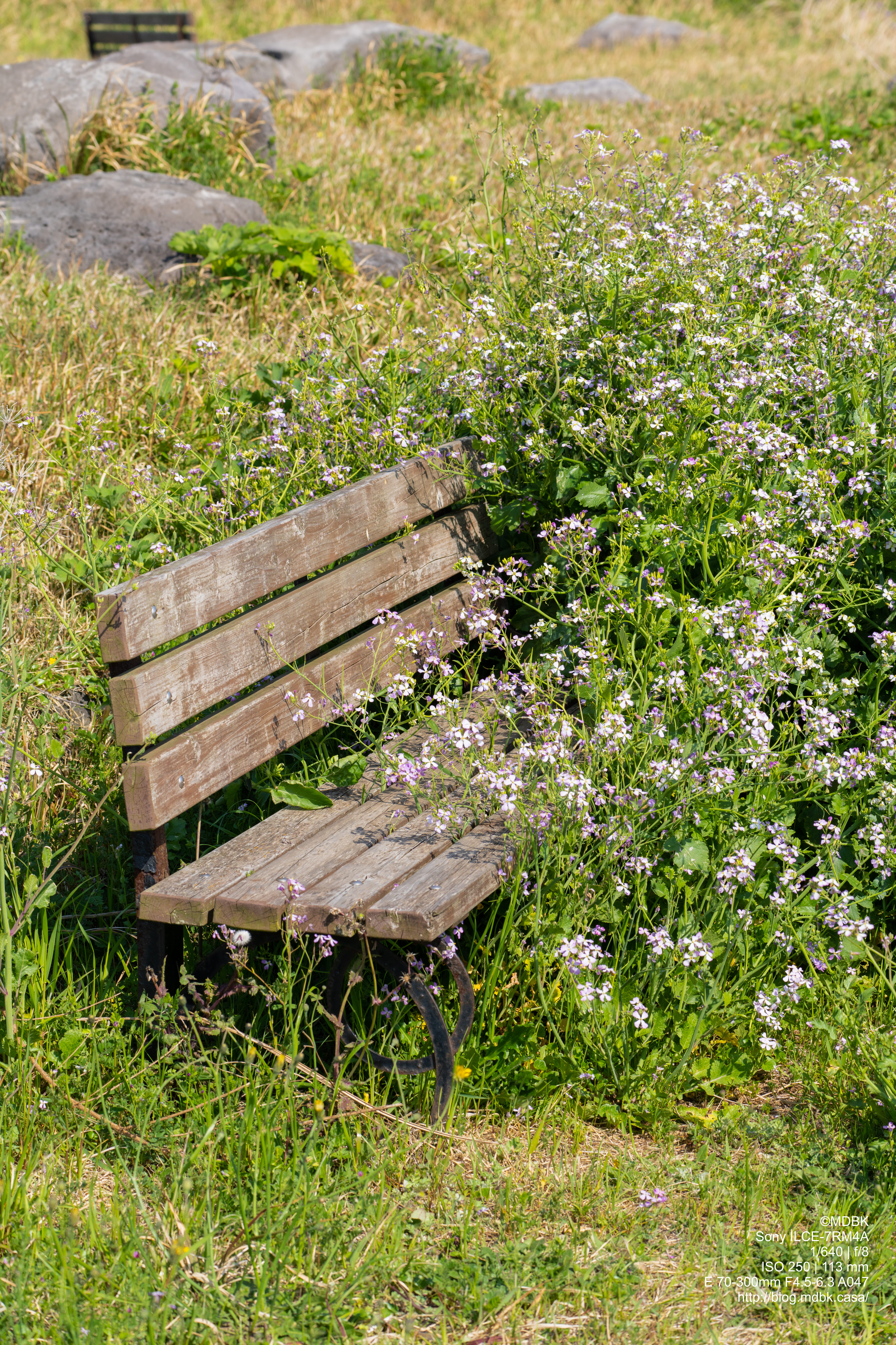 하도리 철새 도래지에서 지나다니다 꽃들에 뒤덮혀버린 벤치를 봤습니다